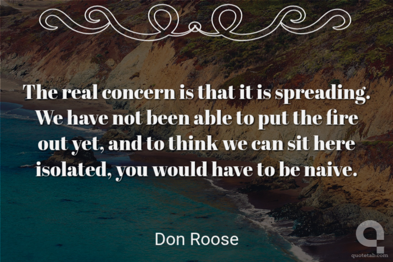 The real concern is that it is spreading. We have not been able to put the fire out yet, and to think we can sit here isolated, you would have to be naive. Don Roose