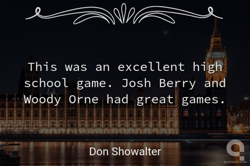 This was an excellent high school game. Josh Berry and Woody Orne had great games. Don Showalter