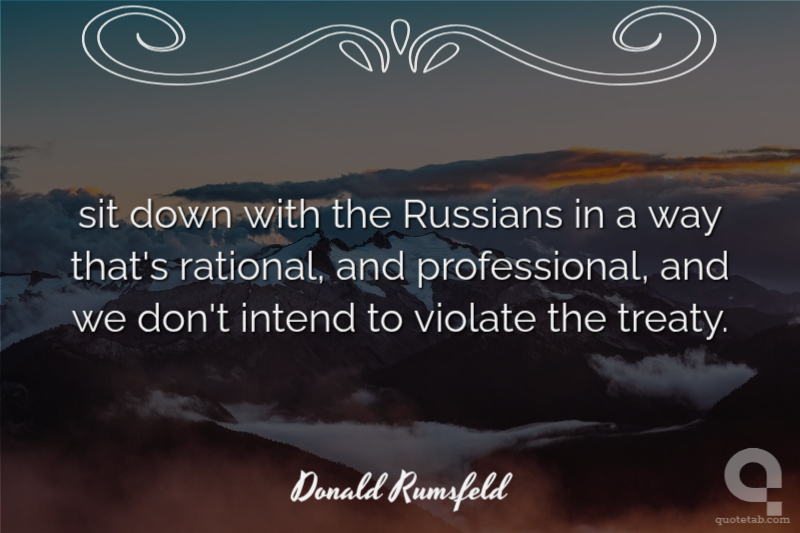 sit down with the Russians in a way that's rational, and professional, and we don't intend to violate the treaty. Donald Rumsfeld