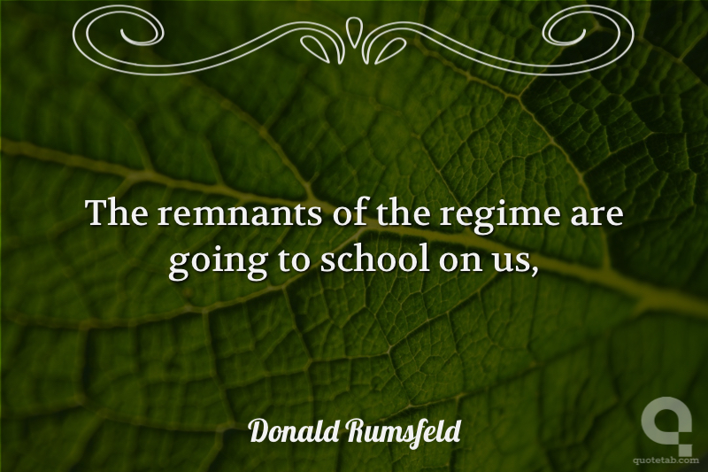 The remnants of the regime are going to school on us, Donald Rumsfeld
