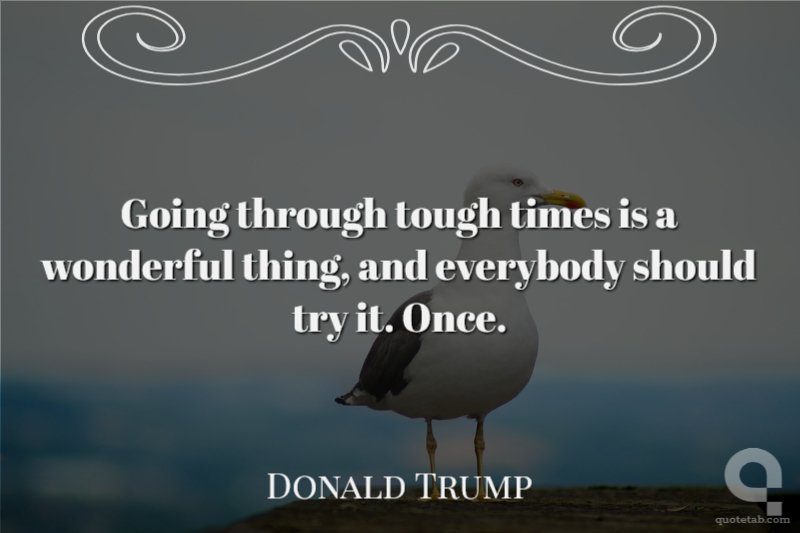 Going through tough times is a wonderful thing, and everybody should try it. Once. Donald Trump
