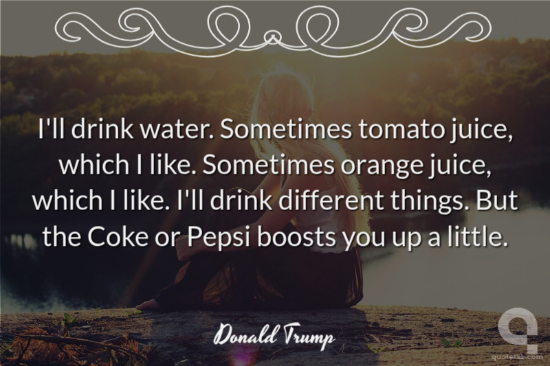 I'll drink water. Sometimes tomato juice, which I like. Sometimes orange juice, which I like. I'll drink different things. But the Coke or Pepsi boosts you up a little. Donald Trump