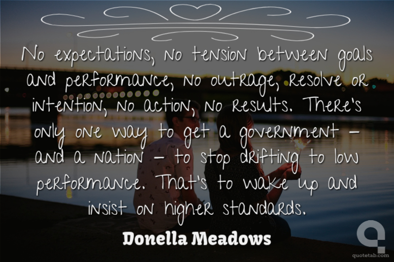 No expectations, no tension between goals and performance, no outrage, resolve or intention, no action, no results. There's only one way to get a government - and a nation - to stop drifting to low performance. That's to wake up and insist on higher standards. Donella Meadows