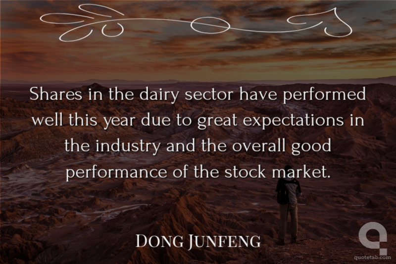 Shares in the dairy sector have performed well this year due to great expectations in the industry and the overall good performance of the stock market. Dong Junfeng