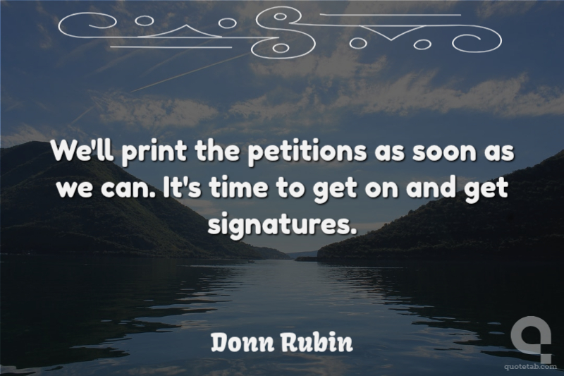 We'll print the petitions as soon as we can. It's time to get on and get signatures. Donn Rubin