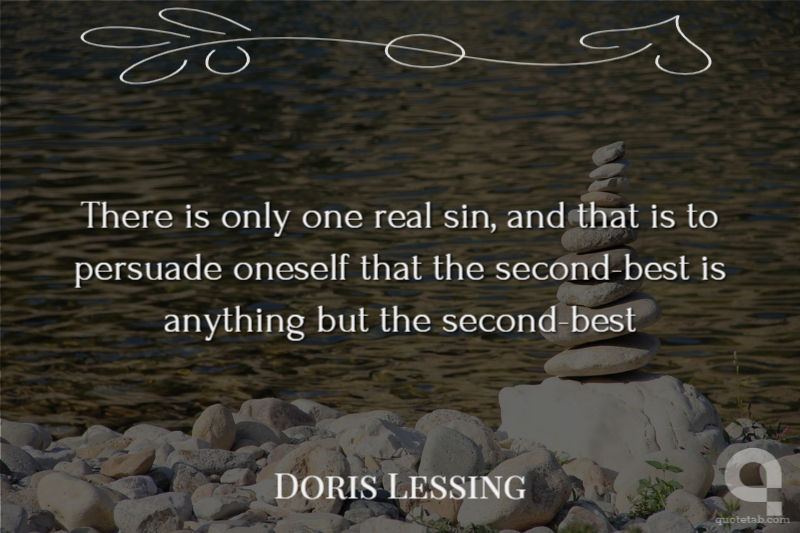 There is only one real sin, and that is to persuade oneself that the second-best is anything but the second-best Doris Lessing