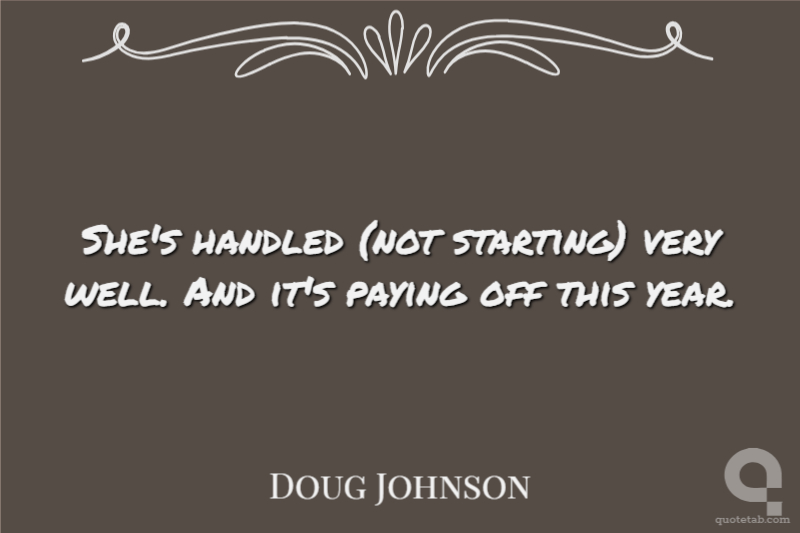 She's handled (not starting) very well. And it's paying off this year. Doug Johnson
