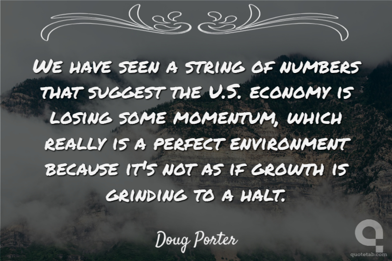 We have seen a string of numbers that suggest the U.S. economy is losing some momentum, which really is a perfect environment because it's not as if growth is grinding to a halt. Doug Porter