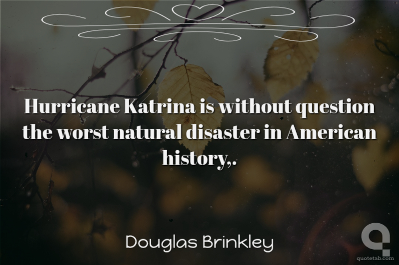 Hurricane Katrina is without question the worst natural disaster in American history,. Douglas Brinkley