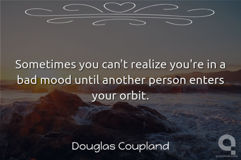Sometimes you can't realize you're in a bad mood until another person enters your orbit. Douglas Coupland