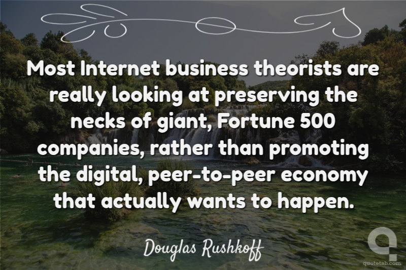 Most Internet business theorists are really looking at preserving the necks of giant, Fortune 500 companies, rather than promoting the digital, peer-to-peer economy that actually wants to happen. Douglas Rushkoff
