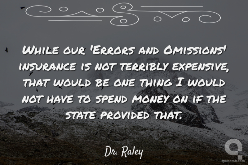 While our 'Errors and Omissions' insurance is not terribly expensive, that would be one thing I would not have to spend money on if the state provided that. Dr. Raley