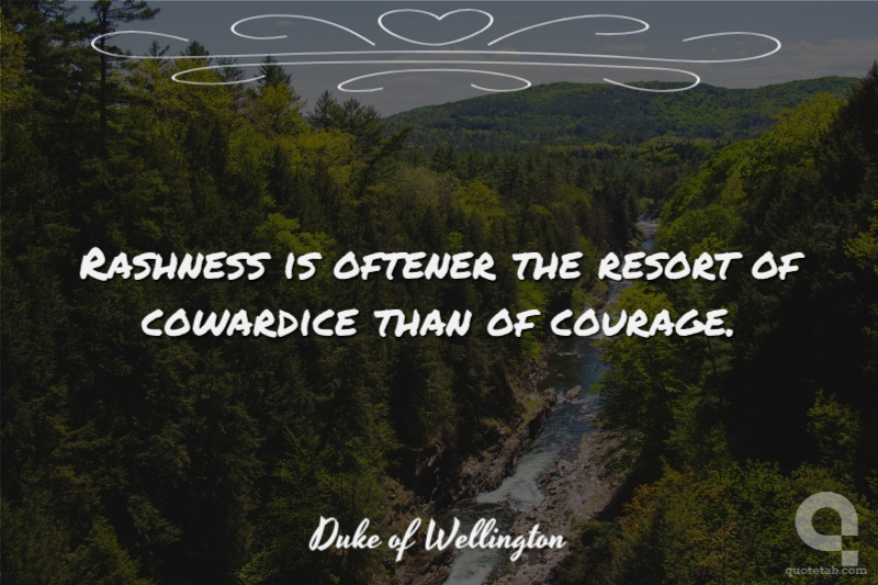 Rashness is oftener the resort of cowardice than of courage. Duke of Wellington