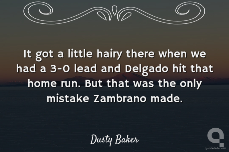 It got a little hairy there when we had a 3-0 lead and Delgado hit that home run. But that was the only mistake Zambrano made. Dusty Baker