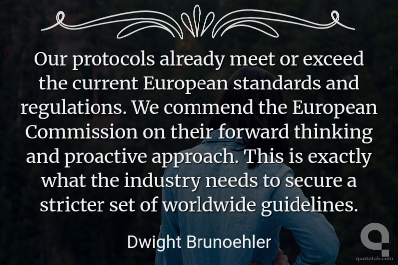 Our protocols already meet or exceed the current European standards and regulations. We commend the European Commission on their forward thinking and proactive approach. This is exactly what the industry needs to secure a stricter set of worldwide guidelines. Dwight Brunoehler