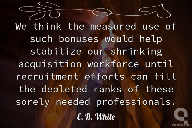We think the measured use of such bonuses would help stabilize our shrinking acquisition workforce until recruitment efforts can fill the depleted ranks of these sorely needed professionals. E. B. White