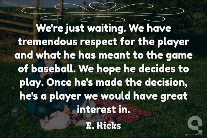 We're just waiting. We have tremendous respect for the player and what he has meant to the game of baseball. We hope he decides to play. Once he's made the decision, he's a player we would have great interest in. E. Hicks