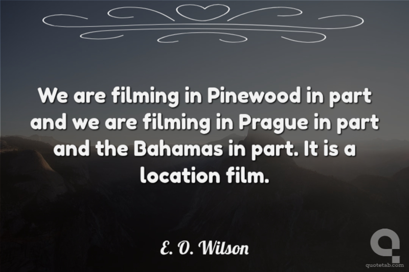 We are filming in Pinewood in part and we are filming in Prague in part and the Bahamas in part. It is a location film. E. O. Wilson