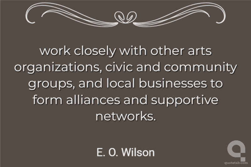 work closely with other arts organizations, civic and community groups, and local businesses to form alliances and supportive networks. E. O. Wilson