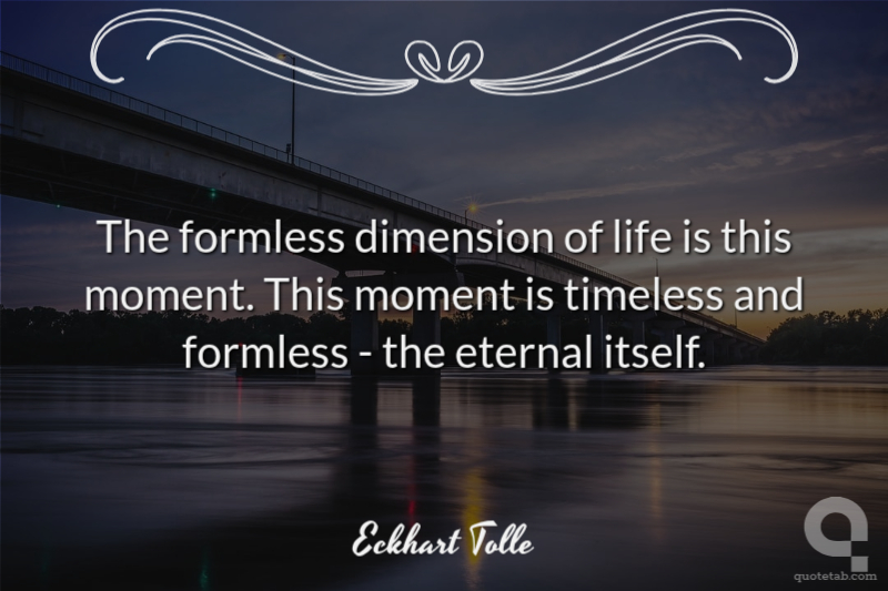 The formless dimension of life is this moment. This moment is timeless and formless - the eternal itself. Eckhart Tolle