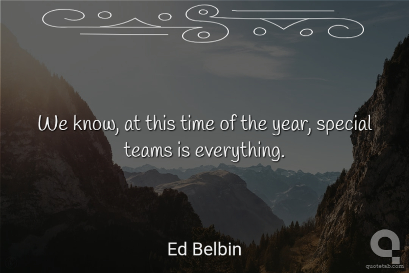 We know, at this time of the year, special teams is everything. Ed Belbin