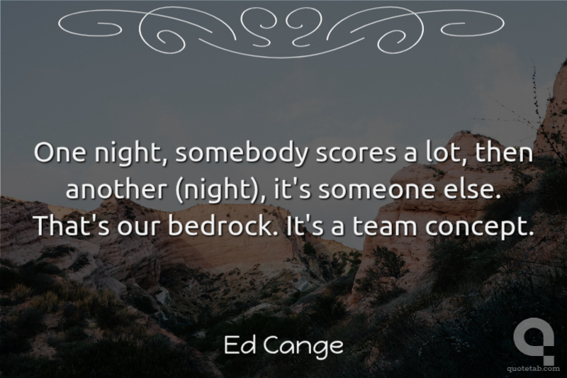 One night, somebody scores a lot, then another (night), it's someone else. That's our bedrock. It's a team concept. Ed Cange
