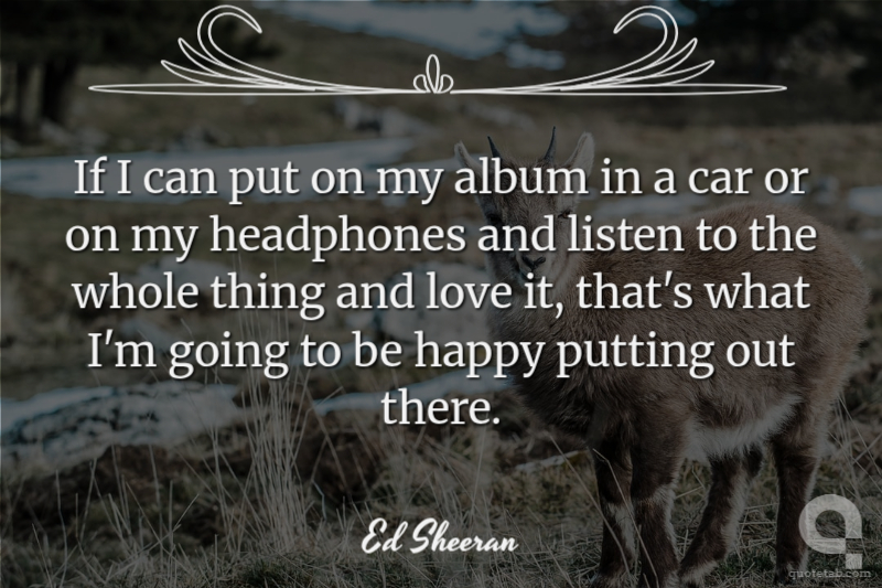 If I can put on my album in a car or on my headphones and listen to the whole thing and love it, that's what I'm going to be happy putting out there. Ed Sheeran