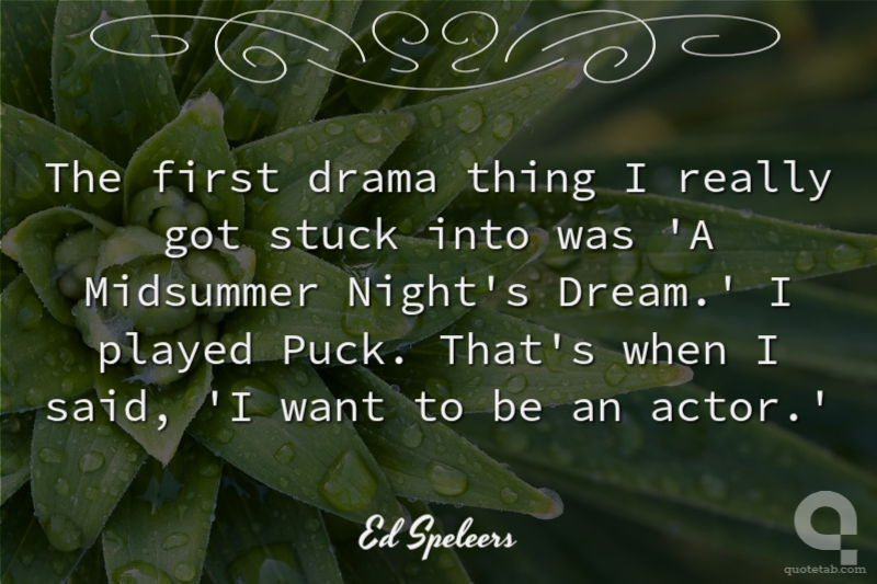 The first drama thing I really got stuck into was 'A Midsummer Night's Dream.' I played Puck. That's when I said, 'I want to be an actor.' Ed Speleers
