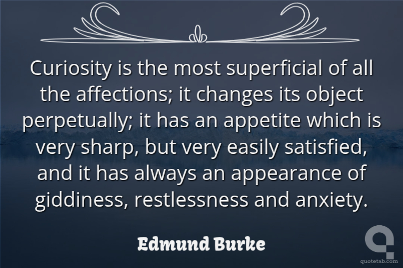 Curiosity is the most superficial of all the affections; it changes its object perpetually; it has an appetite which is very sharp, but very easily satisfied, and it has always an appearance of giddiness, restlessness and anxiety. Edmund Burke