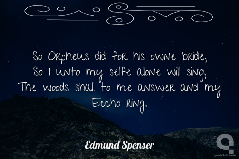 So Orpheus did for his owne bride, So I unto my selfe alone will sing, The woods shall to me answer and my Eccho ring. Edmund Spenser