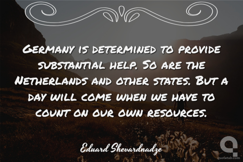 Germany is determined to provide substantial help. So are the Netherlands and other states. But a day will come when we have to count on our own resources. Eduard Shevardnadze