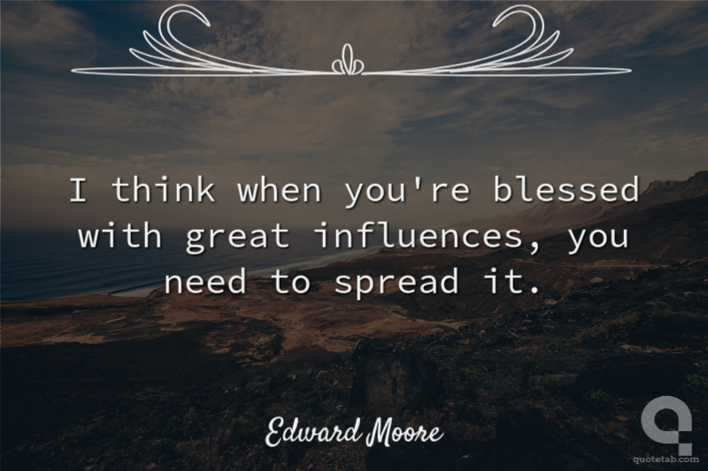I think when you're blessed with great influences, you need to spread it. Edward Moore
