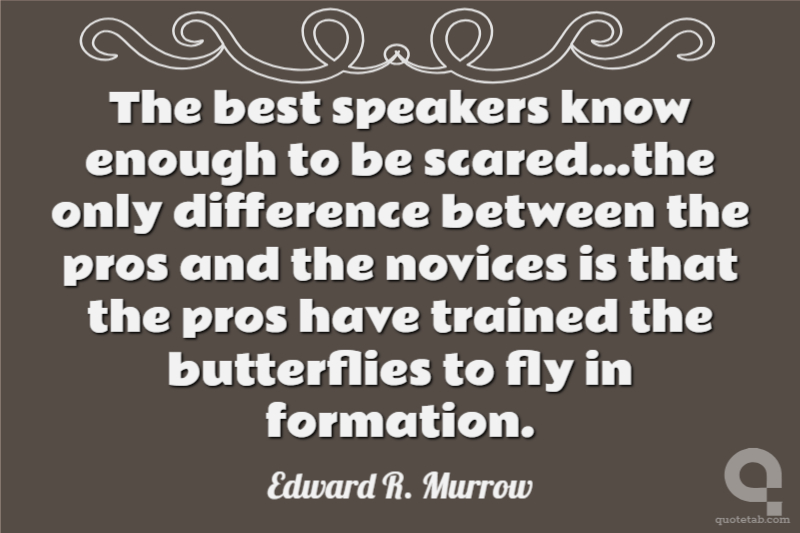 The best speakers know enough to be scared…the only difference between the pros and the novices is that the pros have trained the butterflies to fly in formation. Edward R. Murrow