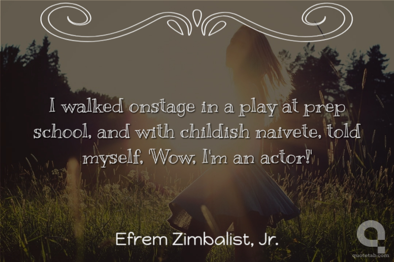 I walked onstage in a play at prep school, and with childish naivete, told myself, 'Wow, I'm an actor!' Efrem Zimbalist, Jr.