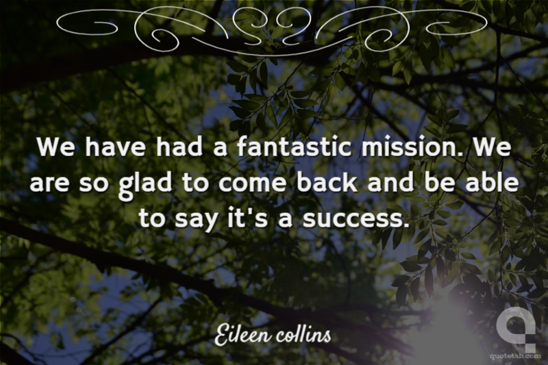 We have had a fantastic mission. We are so glad to come back and be able to say it's a success. Eileen collins