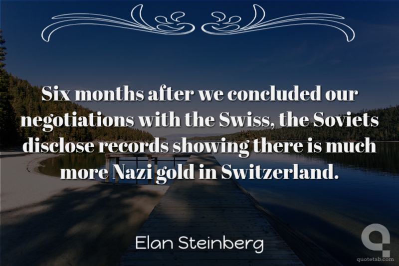 Six months after we concluded our negotiations with the Swiss, the Soviets disclose records showing there is much more Nazi gold in Switzerland. Elan Steinberg