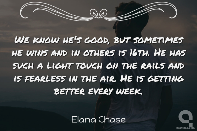 We know he's good, but sometimes he wins and in others is 16th. He has such a light touch on the rails and is fearless in the air. He is getting better every week. Elana Chase