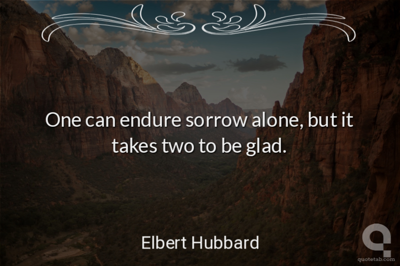 One can endure sorrow alone, but it takes two to be glad. Elbert Hubbard