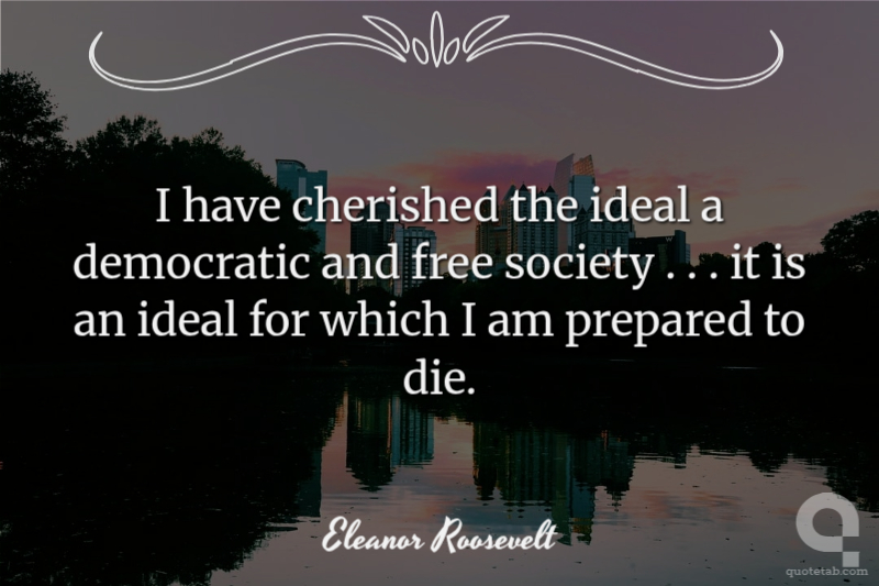 I have cherished the ideal a democratic and free society . . . it is an ideal for which I am prepared to die. Eleanor Roosevelt