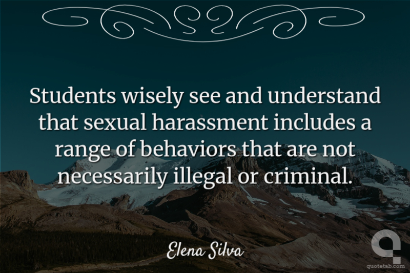 Students wisely see and understand that sexual harassment includes a range of behaviors that are not necessarily illegal or criminal. Elena Silva