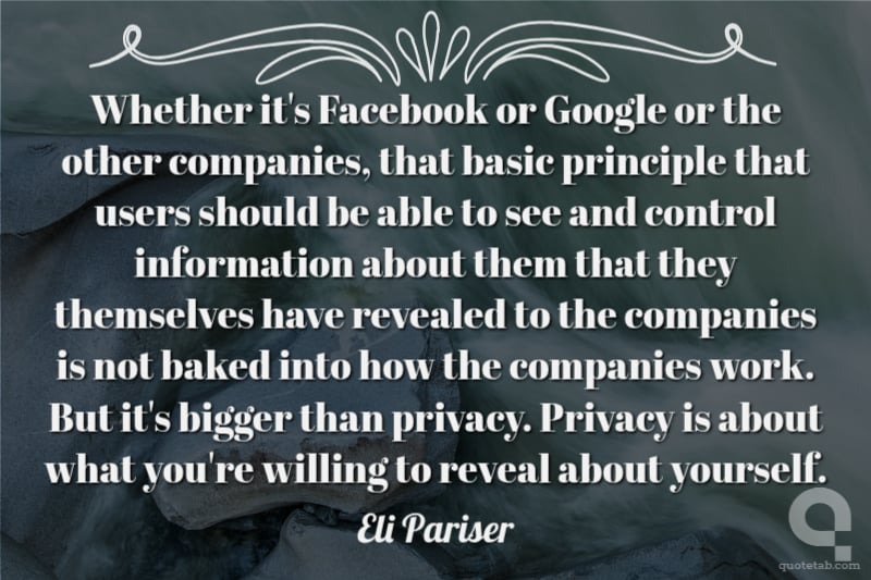 Whether it's Facebook or Google or the other companies, that basic principle that users should be able to see and control information about them that they themselves have revealed to the companies is not baked into how the companies work. But it's bigger than privacy. Privacy is about what you're willing to reveal about yourself. Eli Pariser
