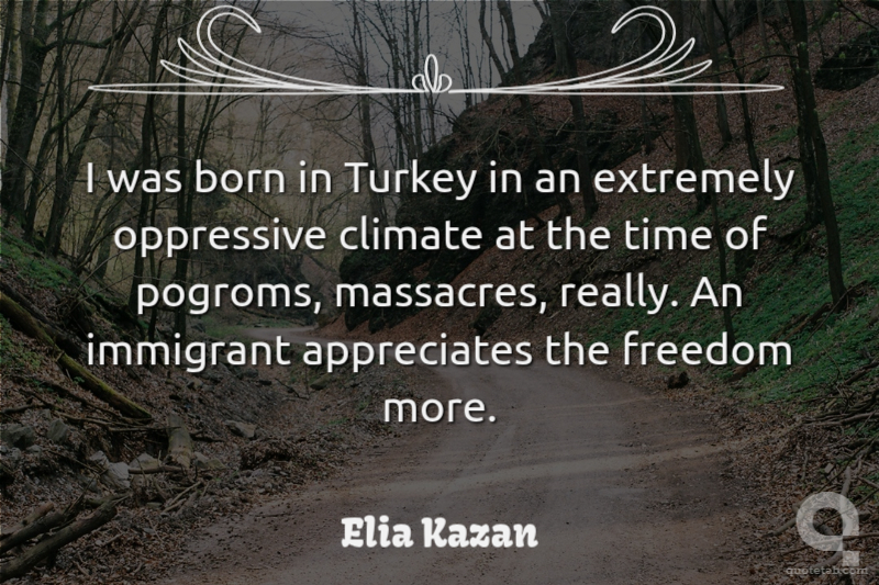 I was born in Turkey in an extremely oppressive climate at the time of pogroms, massacres, really. An immigrant appreciates the freedom more. Elia Kazan