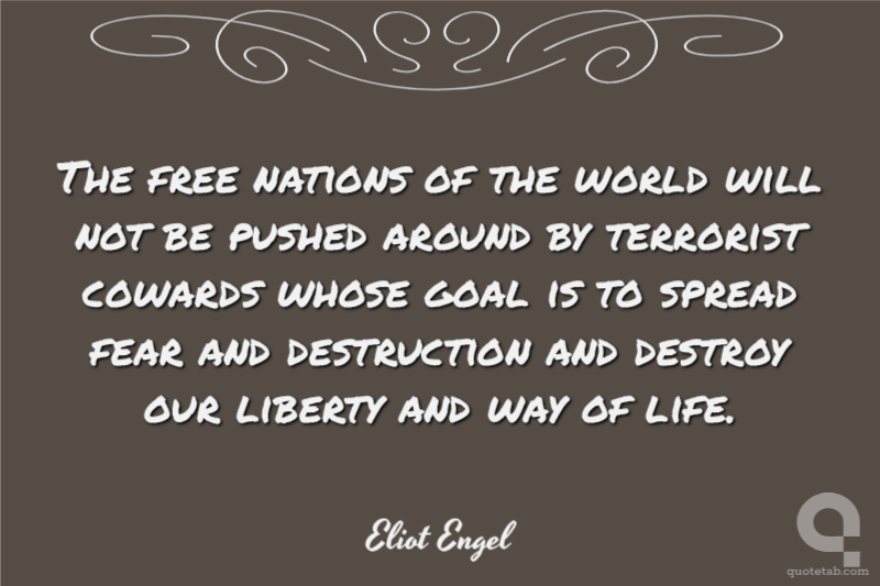 The free nations of the world will not be pushed around by terrorist cowards whose goal is to spread fear and destruction and destroy our liberty and way of life. Eliot Engel