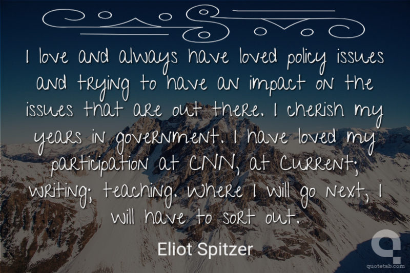 I love and always have loved policy issues and trying to have an impact on the issues that are out there. I cherish my years in government. I have loved my participation at CNN, at Current; writing; teaching. Where I will go next, I will have to sort out. Eliot Spitzer