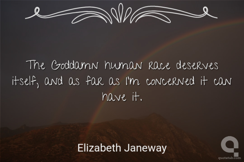 The Goddamn human race deserves itself, and as far as I'm concerned it can have it. Elizabeth Janeway