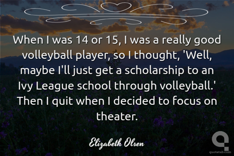 When I was 14 or 15, I was a really good volleyball player, so I thought, 'Well, maybe I'll just get a scholarship to an Ivy League school through volleyball.' Then I quit when I decided to focus on theater. Elizabeth Olsen