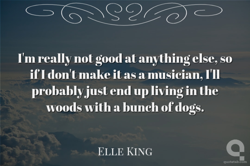 I'm really not good at anything else, so if I don't make it as a musician, I'll probably just end up living in the woods with a bunch of dogs. Elle King