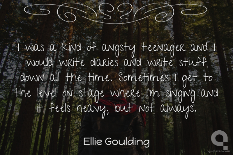 I was a kind of angsty teenager and I would write diaries and write stuff down all the time. Sometimes I get to the level on stage where I'm singing and it feels heavy, but not always. Ellie Goulding