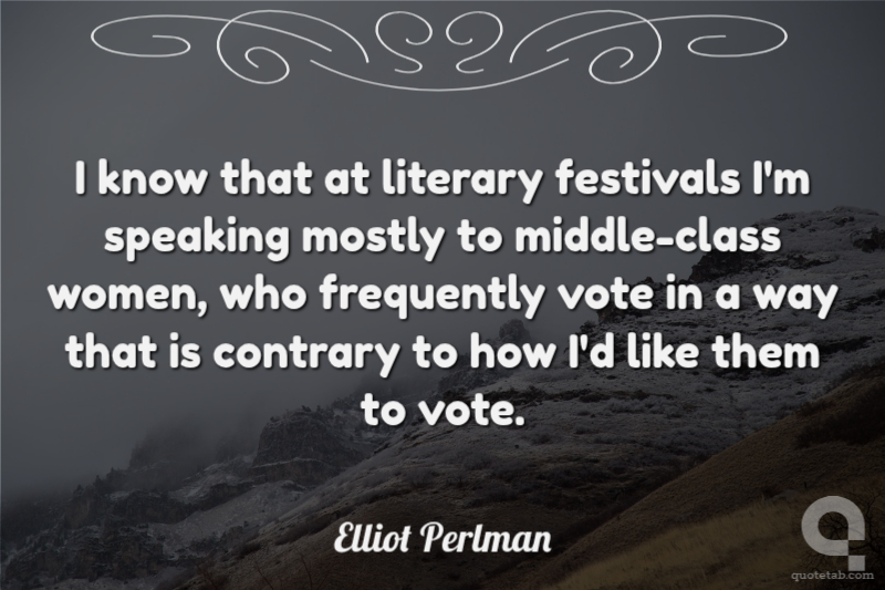 I know that at literary festivals I'm speaking mostly to middle-class women, who frequently vote in a way that is contrary to how I'd like them to vote. Elliot Perlman
