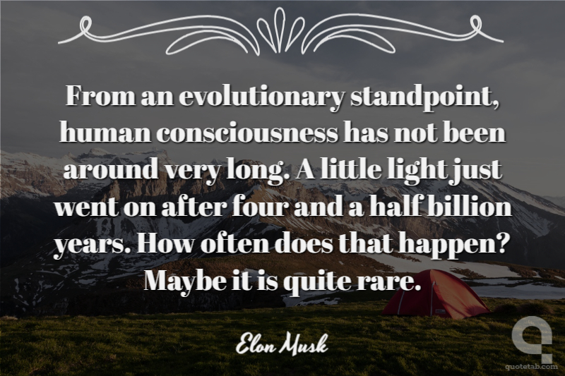 From an evolutionary standpoint, human consciousness has not been around very long. A little light just went on after four and a half billion years. How often does that happen? Maybe it is quite rare. Elon Musk